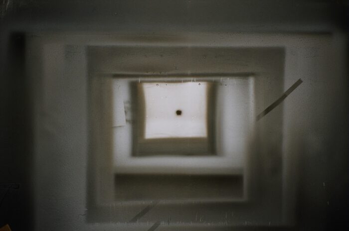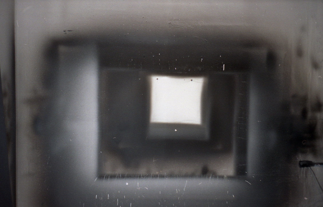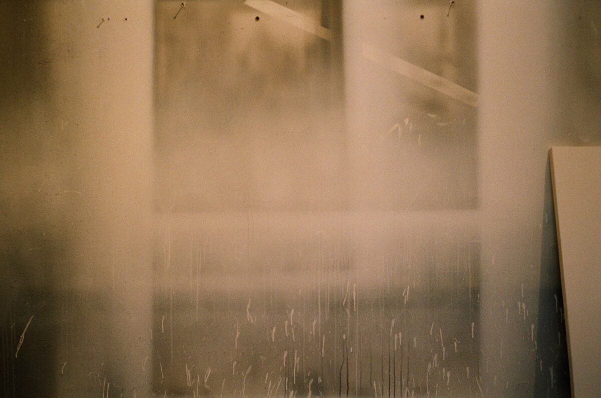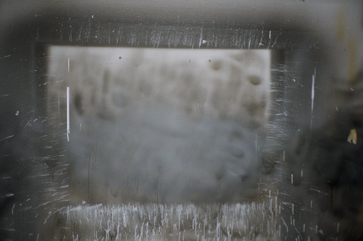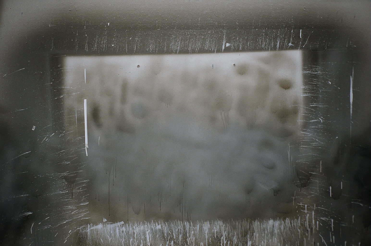 For several years in the 2000s my partners at GH and I shared a common area with painter Cameron Martin in a building on McCarren Park in Greenpoint, Brooklyn. Cameron and his assistants would use intricate stencils to create his work and used a spare room as their spray area. Every so often I would pop in and take photos of the paint left behind.
