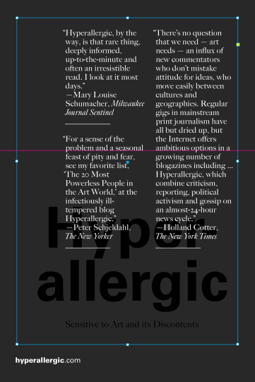 A 4×6 flyer for Hyperallergic, an online art publication, for distribution at Printed Matter’s 2014 LA Artbook Fair.