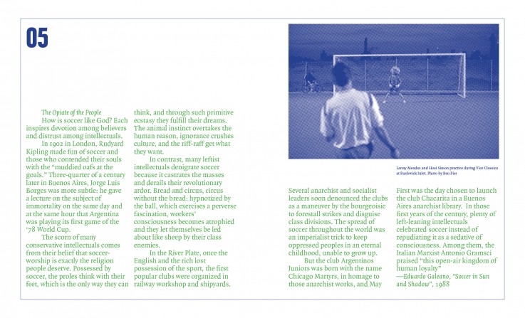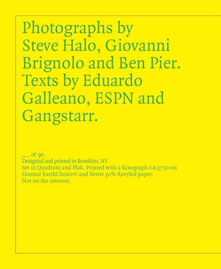 Fan club zine for a soccer club in Manhattan. The trilingual cover references the spoken languages surrounding the club’s home pitches along Chrystie Street. The rules define the page boundaries but are also available to be use for strategical field diagrams. Special mention via Le Journal de la Photographie.