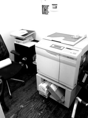 The Risograph was owned by Randall J. Lane and myself and moved to Northern Greenpoint after the GH office shut down. It sat in storage for ten years and was donated to Pioneer Works in 2022. Apparently it is still in use.