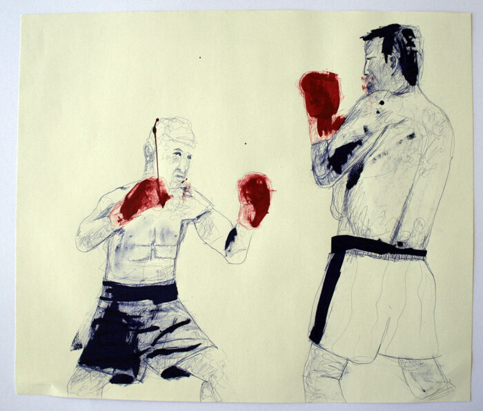 Drawings done with red and blue Bic ink pens for a group show on Glendale Blvd. near the Red Lion Tavern in Los Angeles. Totally forgot who put the show on or the gallery name. I actually forget even making these drawings.